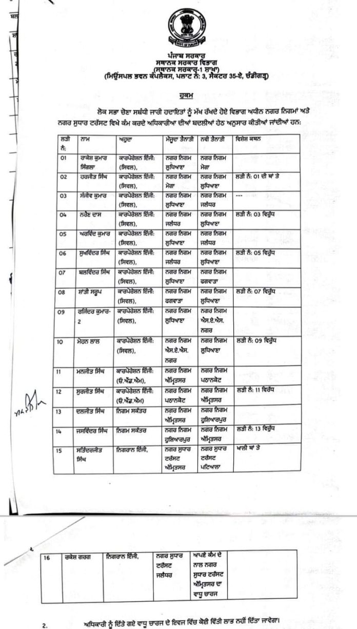 Homeपंजाबफिर हुए तबादले, देखें लिस्ट पंजाब फिर हुए तबादले, देखें लिस्ट By Editor NRI Sanjh January 30, 2024 Share FacebookTwitterPinterestWhatsApp NRI SANJH JALANDHAR (31 January) जालंधर, लुधियाना समेत पंजाब के नगर निगमों और इम्प्रूवमेंट ट्रस्ट में अधिकारियों और कर्मचारियों के तबादले किए गए। TagsChandigarhDelhiIndiaJalandharPOLICEPUNJAB Share FacebookTwitterPinterestWhatsApp Previous articleकुछ खट्टा हो जाए फिल्म से गुरु रंधावा करने जा रहे हैं एक्टिंग डेब्यू, टीजर रिलीजNext articleजालंधर अमृतसर हाईवे पर ऑटो और कार की भयानक टक्कर में दो लोगों Editor NRI Sanjh RELATED ARTICLES पंजाब पटियाला में रेलवे ट्रैक धमाके के बाद पंजाब से दिल्ली जाने वाली ट्रेनें प्रभावित April 28, 2026 पंजाब भीषण गर्मी के बीच, बारिश होने से बदला मौसम April 28, 2026 पंजाब अमृतसर में हुआ सड़क हादसा, एक परिवार के तीन लोगों की गई जान April 27, 2026 Most Popular पटियाला में रेलवे ट्रैक धमाके के बाद पंजाब से दिल्ली जाने वाली ट्रेनें प्रभावित April 28, 2026 भीषण गर्मी के बीच, बारिश होने से बदला मौसम April 28, 2026 सोने का क्या है दाम ? April 28, 2026 दाऊद इब्राहिम का सहयोगी सलीम डोला भारत लाया गया ! April 28, 2026 Load more Recent Comments
