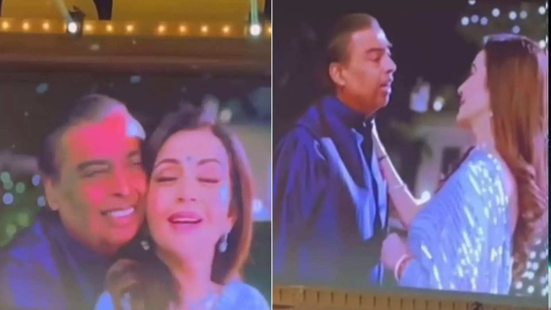 वीडियो में, अंबानी के वरिष्ठों को ‘प्यार हुआ इकरार हुआ’ गाने पर नाचते हुए देखा जा सकता है और उनका एक वीडियो बड़ी स्क्रीन पर चलाया जा रहा है। वे प्रदर्शन के लिए बनाए गए विशाल मंच पर रिहर्सल में व्यस्त देखे गए।