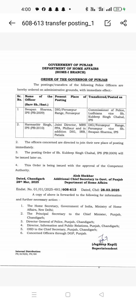 HomeनेशनलCP स्वप्न शर्मा की फिर हुई ट्रांसफर, देखें कहां हुई पोस्टिंग पंजाब CP स्वप्न शर्मा की फिर हुई ट्रांसफर, देखें कहां हुई पोस्टिंग By Editor NRI Sanjh March 28, 2025 Share FacebookTwitterPinterestWhatsApp NRI SANJH JALANDHAR (28 MARCH) ViaNRI SANJH SourceNRI SANJH TagsChandigarhCP Swapan Sharma transferred againDelhihe was postedHindi newsIndiaJalandharNEWS SAMACHARPmPOLICEPUNJABsee where Share FacebookTwitterPinterestWhatsApp Previous articleसुप्रीम कोर्ट ने खारिज की जस्टिस वर्मा के खिलाफ FIR दर्ज करने की मांग वाली याचिकाNext articleम्यांमार में भूकंप ने मचाई तबाही: अमेरिकी एजेंसी का दावा-1000 लोगों की मौत, भारत ने भेजी मदद; प्रत्यक्षदर्शियों ने बताई हकीकत Editor NRI Sanjh RELATED ARTICLES पंजाब राघव चड्ढा के ‘आप’ छोड़ने पर क्या बोले केजरीवाल ? April 24, 2026 पंजाब राघव चड्ढा ने आम आदमी पार्टी छोडी,थामा BJP का हाथ April 24, 2026 पंजाब पंजाब पुलिस ने शुरू किया ‘संपर्क अभियान’,युवाओं को गैंगस्टरों के बारे किया जाएगा जागरूक April 24, 2026 Most Popular राघव चड्ढा के ‘आप’ छोड़ने पर क्या बोले केजरीवाल ? April 24, 2026 राघव चड्ढा ने आम आदमी पार्टी छोडी,थामा BJP का हाथ April 24, 2026 पंजाब पुलिस ने शुरू किया ‘संपर्क अभियान’,युवाओं को गैंगस्टरों के बारे किया जाएगा जागरूक April 24, 2026 सुप्रीम कोर्ट ने सज्जन कुमार की अंतरिम ज़मानत याचिका की खारिज April 24, 2026 Load more Recent Comments