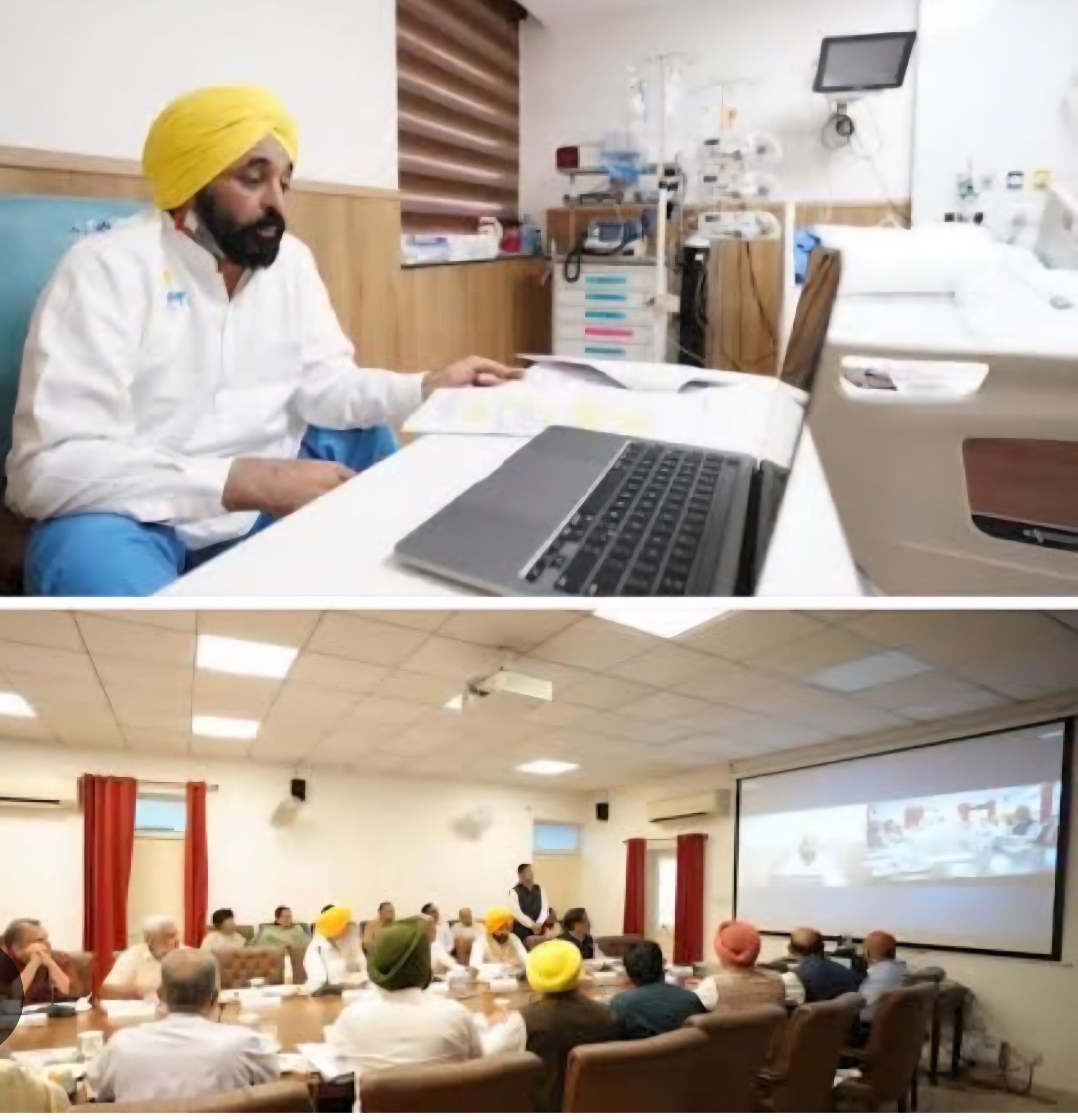 पिछले कई दिन से बीमार चल रहे पंजाब के मुख्यमंत्री भगवंत मान अस्पताल में भर्ती है। इसके चलते आज दोपहर 12 बजे कैबिनेट की बैठक अस्पताल से ही वीडियो कॉन्फ्रेंसिंग के जरिए हुई।इस दौरान उन्होंने मंत्रियों और अधिकारियों से पंजाब में आई बाढ़ और ताजा हालातों का जायजा लिया। साथ ही, किसानों के खेतों में बाढ़ के कारण जमा रेत के मुद्दे पर भी फैसला लिया गया।