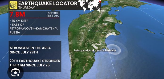 रूस में एक ज़ोरदार भूकंप आया है, जिसके बाद सुनामी की चेतावनी जारी कर दी गई है। कामचटका प्रायद्वीप के पास 7.8 तीव्रता का भूकंप महसूस किया गया। इन शक्तिशाली झटकों ने लोगों को दहशत में डाल दिया है। सोशल मीडिया पर भूकंप के कई वीडियो सामने आए हैं, जिनमें फ़र्नीचर, कारें और लाइटें हिलती हुई दिखाई दे रही हैं।