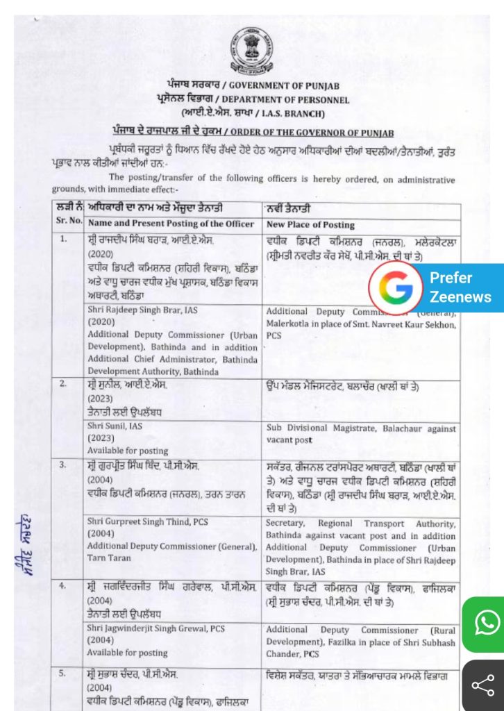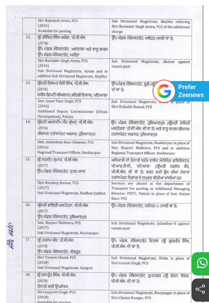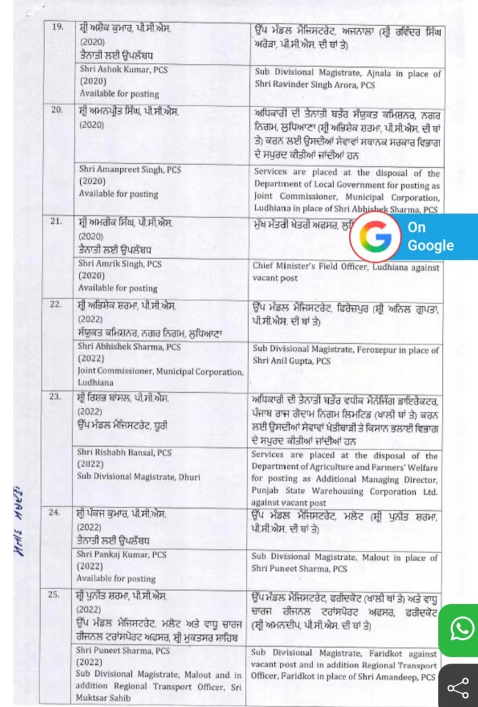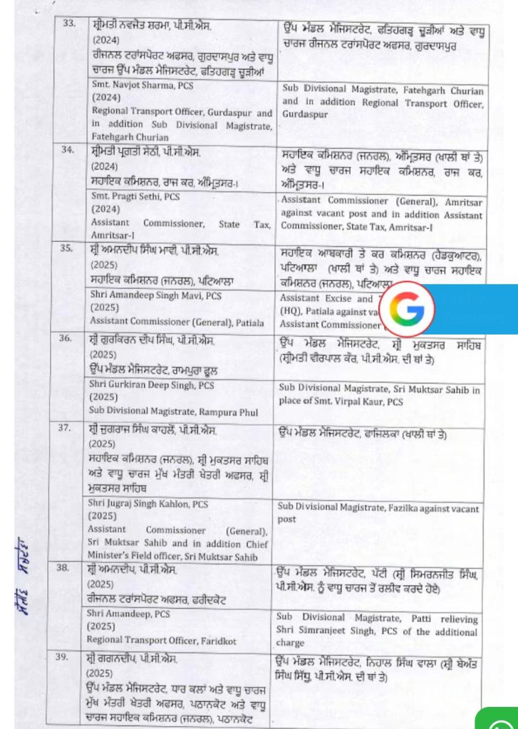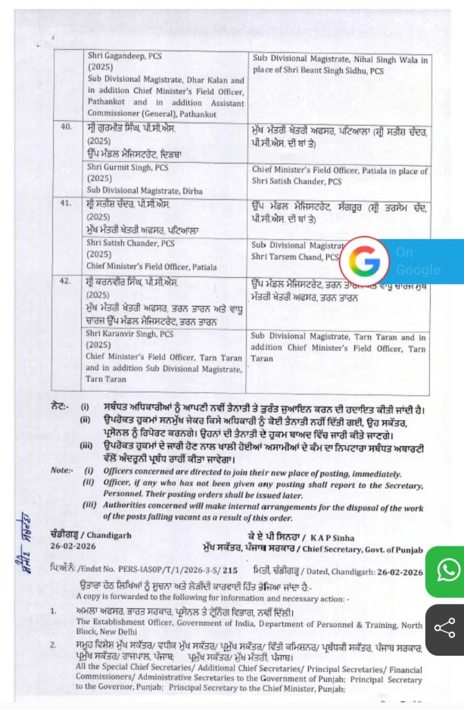 Homeपंजाबपंजाब सरकार ने दो IAS अधिकारियों और 40 PCS अधिकारियों का किया... पंजाब पंजाब सरकार ने दो IAS अधिकारियों और 40 PCS अधिकारियों का किया तबादला By Editor NRI Sanjh February 26, 2026 Share FacebookTwitterPinterestWhatsApp पंजाब सरकार ने दो IAS अधिकारियों और 40 PCS अधिकारियों समेत 42 एडमिनिस्ट्रेटिव अधिकारियों का ट्रांसफर कर दिया है। TagsHindi news Share FacebookTwitterPinterestWhatsApp Previous articleपरमीश वर्मा के बिजनेस मैनेजर को बिश्नोई गैंग ने दी धमकी….. Editor NRI Sanjh RELATED ARTICLES पंजाब परमीश वर्मा के बिजनेस मैनेजर को बिश्नोई गैंग ने दी धमकी….. February 26, 2026 पंजाब बीबी जागीर कौर ने बीमार होने पर क्या कहा ? February 26, 2026 पंजाब ‘आप’ के सरपंच हरबिंदर सिंह के कत्ल मामले में आरोपी गिरफ्तार February 26, 2026 - Advertisment - Most Popular परमीश वर्मा के बिजनेस मैनेजर को बिश्नोई गैंग ने दी धमकी….. February 26, 2026 बीबी जागीर कौर ने बीमार होने पर क्या कहा ? February 26, 2026 ‘आप’ के सरपंच हरबिंदर सिंह के कत्ल मामले में आरोपी गिरफ्तार February 26, 2026 सीएम मान प्राकृतिक ढंग से इलाज करवाने गए बेंगलुरु February 26, 2026 Load more Recent Comments