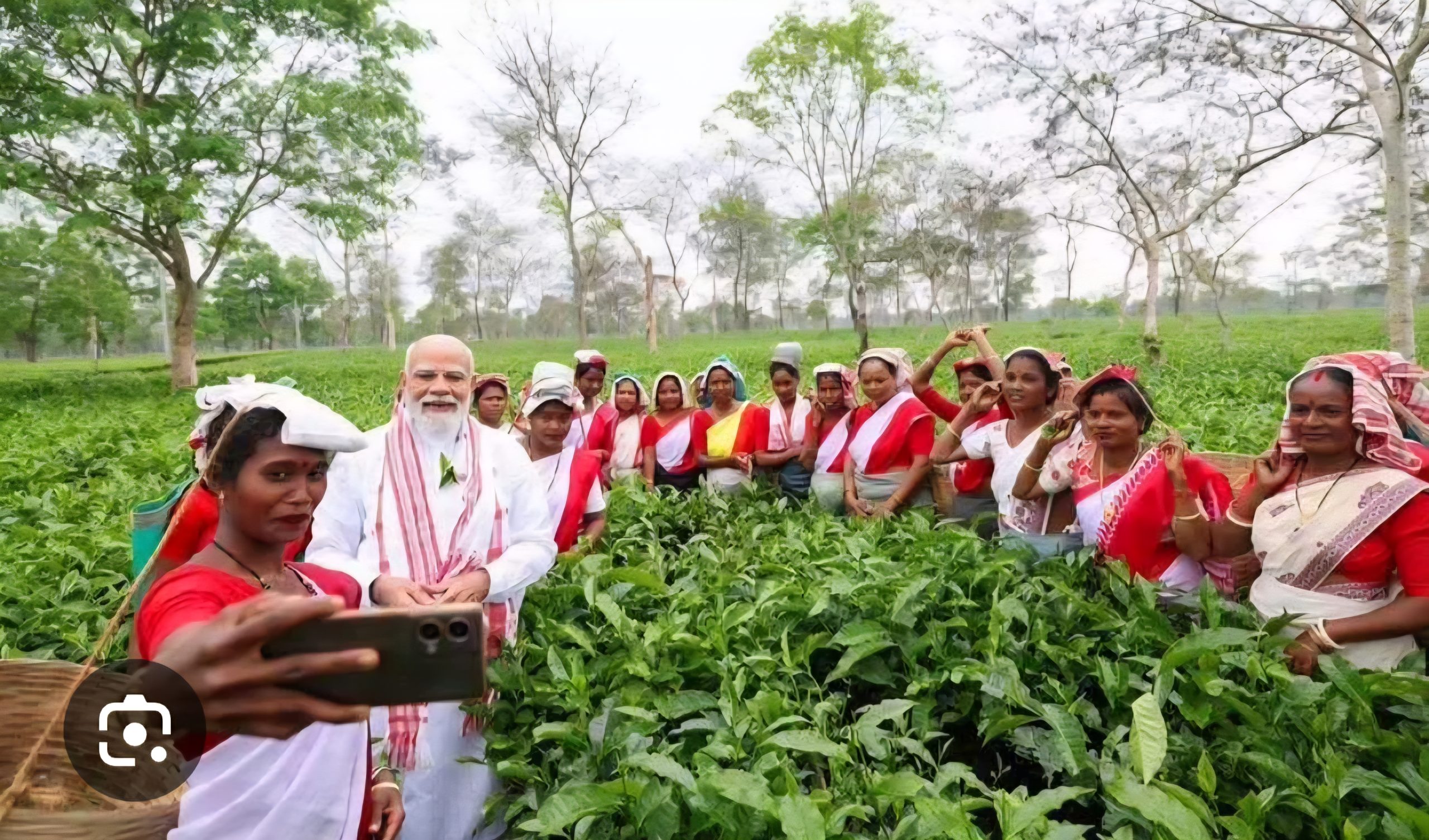 प्रधानमंत्री नरेंद्र मोदी आज सुबह-सुबह असम के डिब्रूगढ़ पहुंचे। पीएम मोदी ने वहां चाय के बागानों में मौजूद महिलाओं से मुलाकात की। महिलाओं की अपील पर प्रधानमंत्री ने उन सभी के साथ सेल्फी भी ली।पीएम मोदी ने चाय बगान की तस्वीरें अपने एक्स हैंडल पर शेयर की। डिब्रूगढ़ के चाय बगान की कुछ तस्वीरें शेयर करते हुए पीएम मोदी ने लिखा कि चाय असम की आत्मा है। यहां की चाय ने पूरी दुनिया में अपनी पहचान बनाई है।