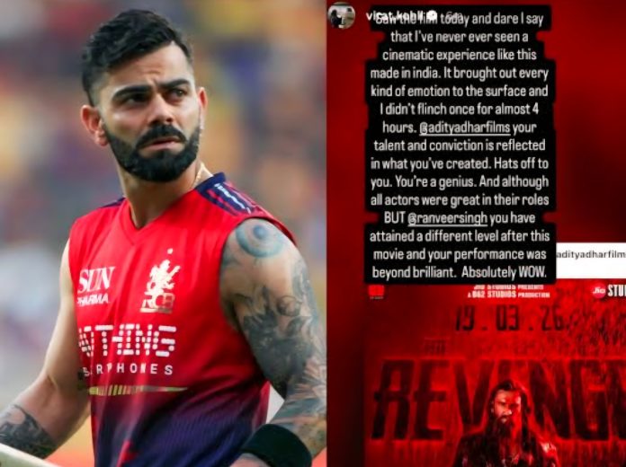 विराट कोहली को धुरंधर-2 फिल्म इतनी पसंद आई कि उन्होंने इंस्टाग्राम पर तारीफ़ में एक पोस्ट किया, उन्होंने इसे भारत में बनी अभी तक की सबसे बेहतरीन फिल्म भी बताया।IPL 2026 में RCB के लिए खेल रहे कोहली ने कलाकार रणवीर सिंह की एक्टिंग को भी सराहा।
