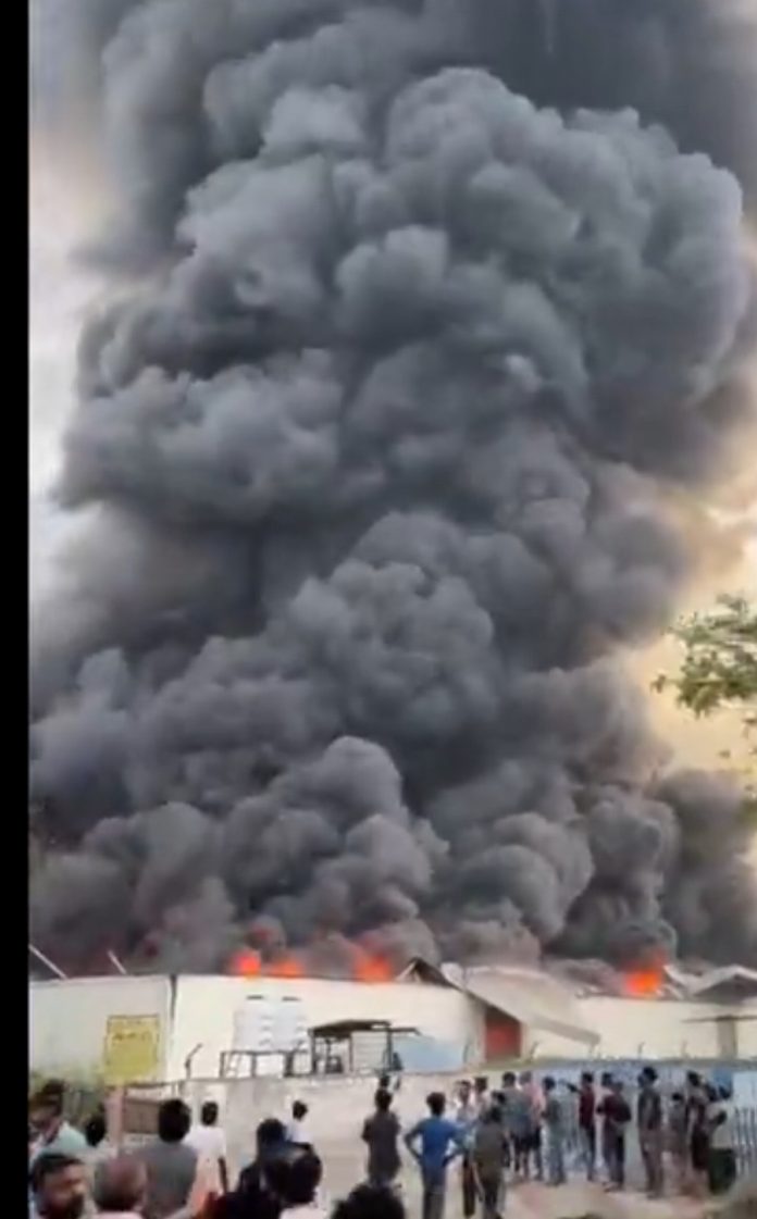 बनूर-टेपला रोड पर एक कंपनी के गोदाम में भीषण आग लग बनूर-टेपला रोड पर एक कंपनी के गोदाम में भीषण आग लग गई। दमकल की दो गाड़ियां मौके पर पहुंच गई हैं। बताया जा रहा है कि इस गोदाम में अगरबत्तियों का स्टॉक रखा था, जिसके कारण आग तेजी से फैल गई। जिस जगह पर आग लगी है, वहां बांद्रीवाल में दो अन्य गोदाम भी हैं।ये गोदाम सर्फ, अन्य लिक्विड प्रोडक्ट्स और किराने के सामान के लिए इस्तेमाल होते हैं। ।