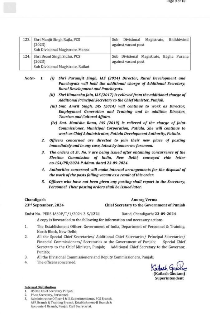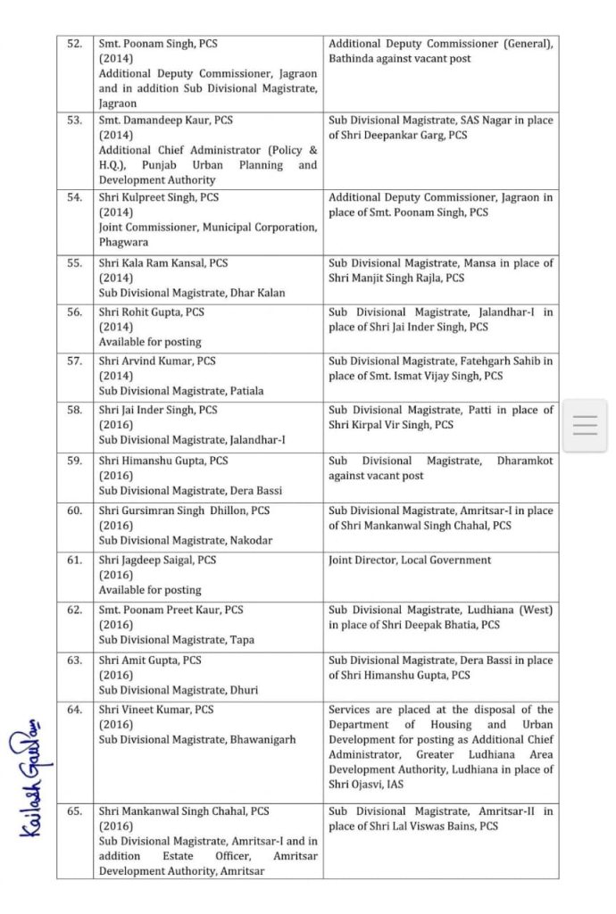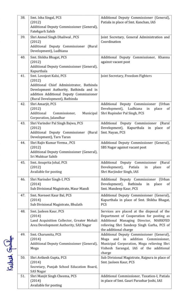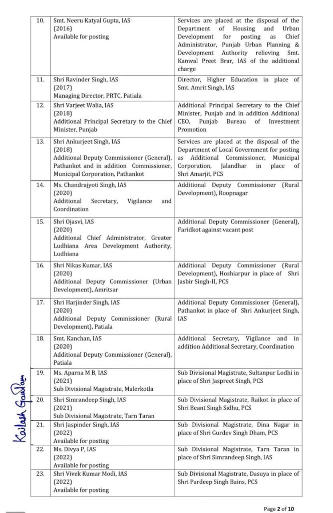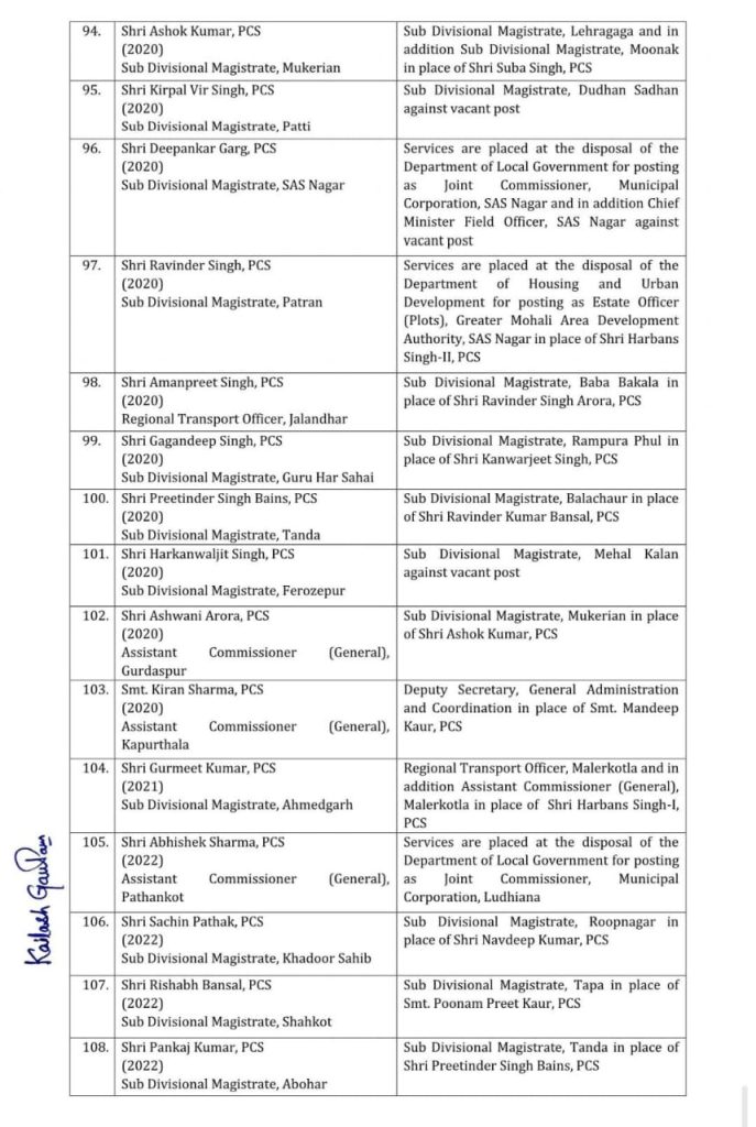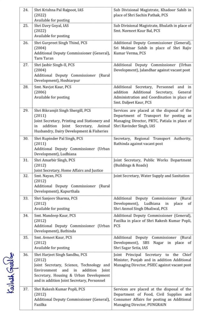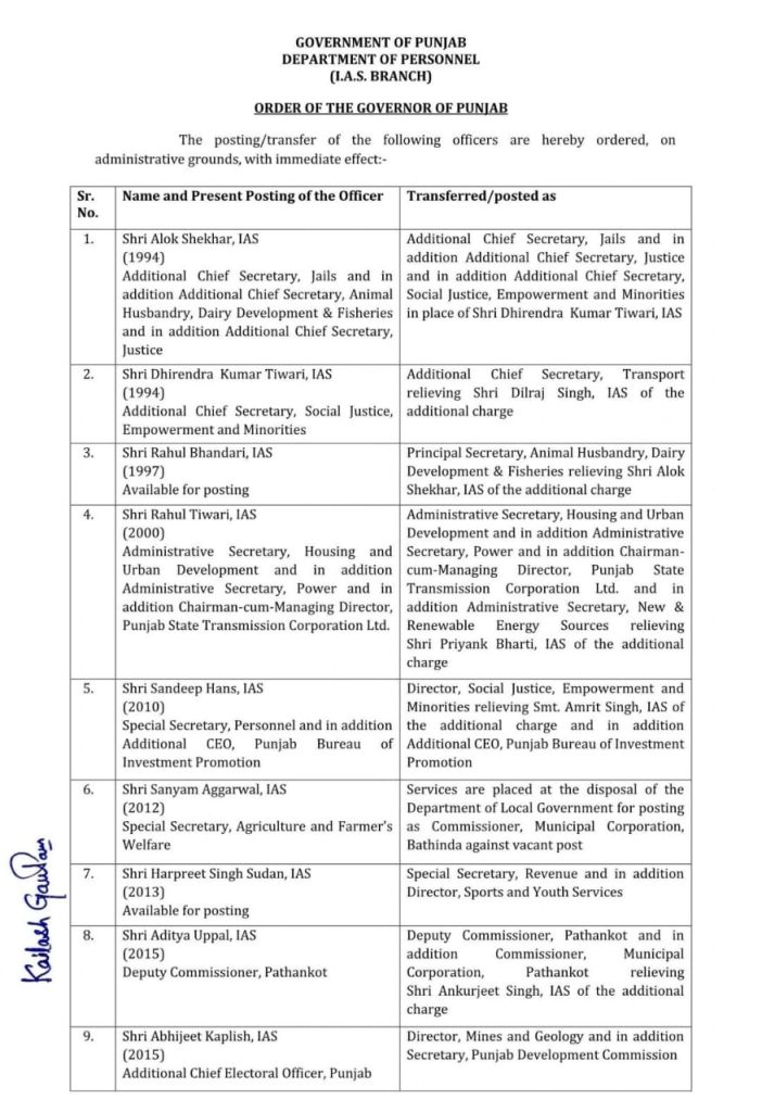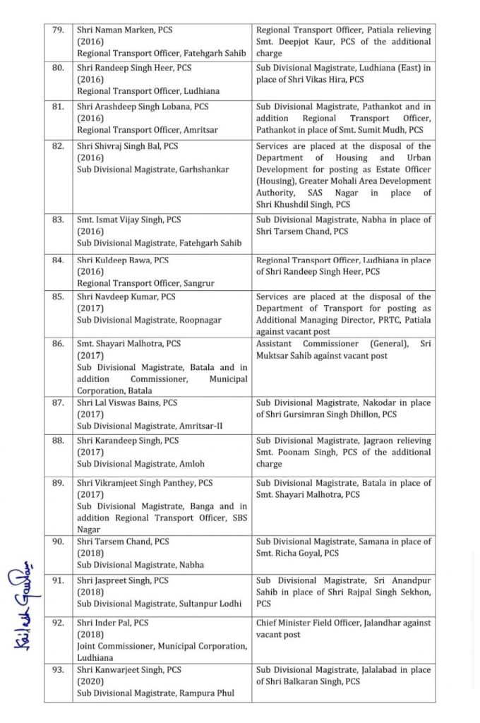 पंजाब सरकार ने जहां बड़े स्तर पर फेर बदल किया। वहीं सोमवार देर रात को IAS और PCS अधिकारियों की ट्रांसफर लिस्ट जारी की।