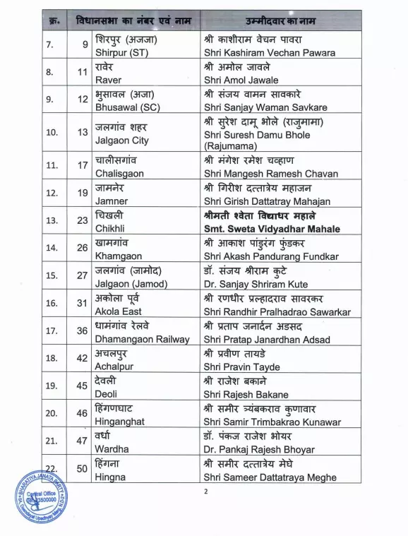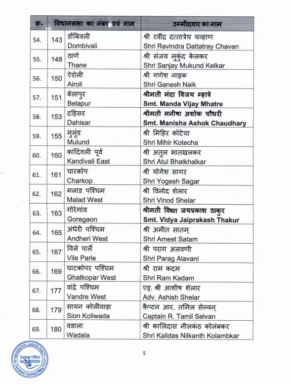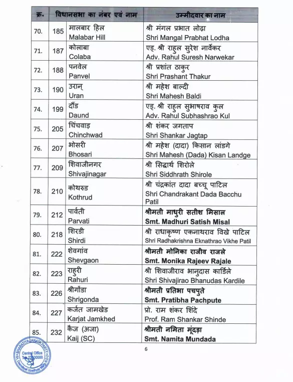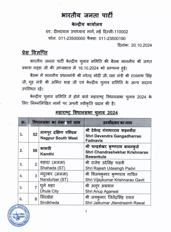 महाराष्ट्र विधानसभा चुनाव 2024, बीजेपी की पहली लिस्ट आई