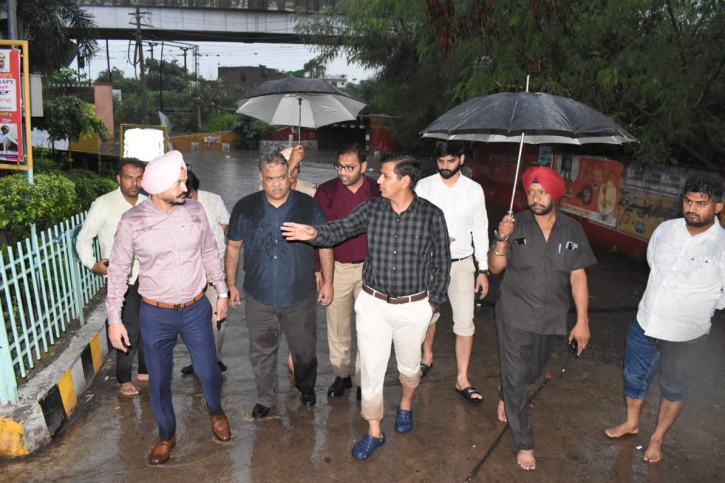 बरसात दौरान पानी जमा होने की स्थिति का लिया जायज़ा, नगर निगम के फील्ड कर्मचारियों के साथ की बातचीत